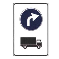 [14040_06] Il segnale raffigurato preannuncia che gli autocarri oltre 3,5 t devono svoltare nella direzione della frecciaCategoria: 04. Segnali di obbligoVero