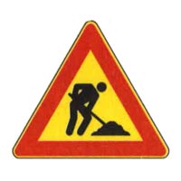 [19003_03] Il segnale raffigurato preavvisa eventuali depositi temporanei di materiali o macchinariCategoria: 09. Segnali complementari, segnali temporanei e di cantiereVero