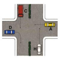 [24009_05] Nell'incrocio rappresentato in figura il veicolo H è l'ultimo ad attraversare l'incrocioCategoria: 14. Esempi di precedenza (ordine di precedenza agli incroci)Vero