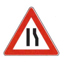 [12033_06] Il segnale raffigurato, se a fondo giallo, è posto in presenza di un cantiere che riduce la larghezza della carreggiataCategoria: 02. Segnali di pericoloVero
