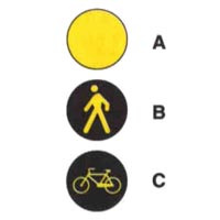 [17005_04] La luce circolare gialla lampeggiante (tipo A di figura) invita a procedere con particolare prudenzaCategoria: 07. Segnalazioni semaforiche e degli agenti del trafficoVero
