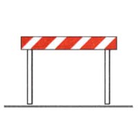 [19004_05] La barriera raffigurata può essere integrata da lanterna a luce rossa fissa in caso di scarsa visibilitàCategoria: 09. Segnali complementari, segnali temporanei e di cantiereVero